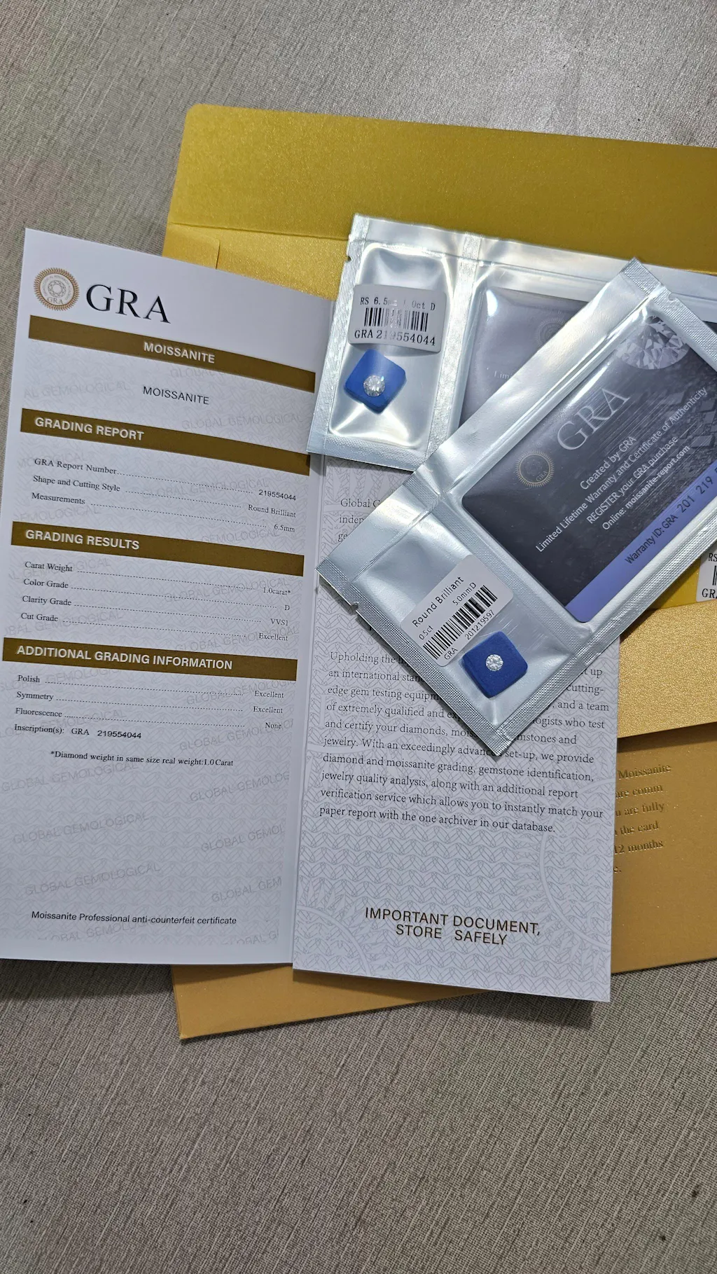 GRA Moissanite Diamonds with Certificate